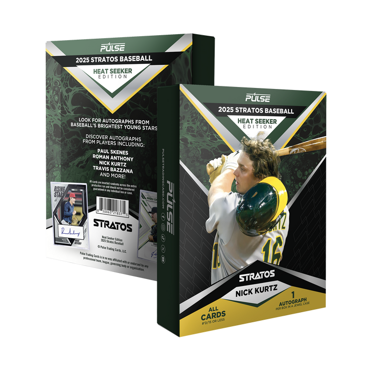 The 2025 Pulse Stratos Baseball Heat Seeker Edition delivers high-upside hits from the sport’s most electrifying young stars. Each box includes 1 autographed, encased card, numbered to 50 or less, sealed in a jewel case for premium protection and display.