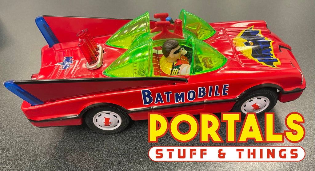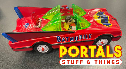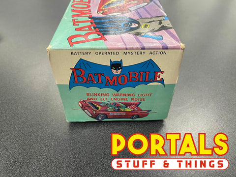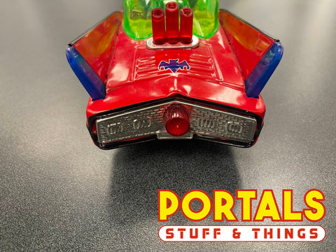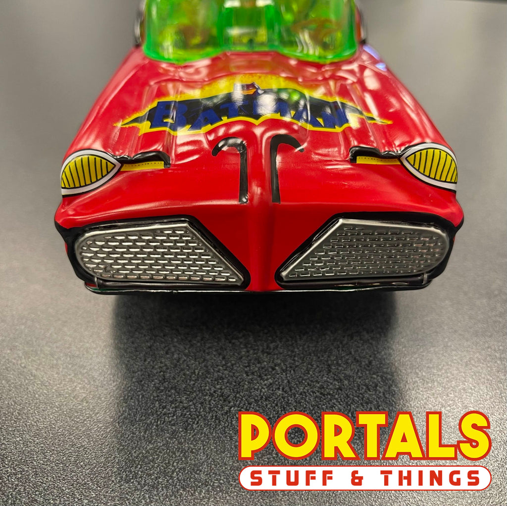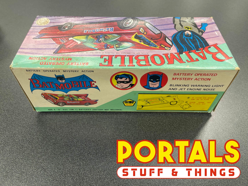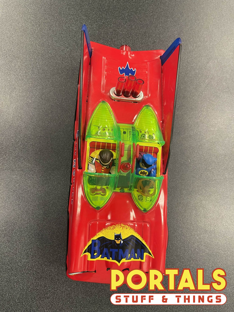 This contains 1 Tin Batman Batmobile with Box (Tiawan). As seen in the pictures, this is a VERY clean model. The wheels on the bottom look amazing. We put batteries in it, and it turns on, the lights work, and the wheels spin all around. This was a very luck find for us.