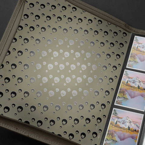 Every day can be a good day with Bob Ross tabletop accessories! The Mighty Mountain Lake 9-Pocket Zippered PRO-Binder features a vibrant, full-art print of a Bob Ross original painting, and is designed for collecting and organizing your favorite trading cards. Vibrant autumn foliage, a snow-covered mountain, and a soft pink sunset are all reflected in the calm waters of a serene lake which adorn this premium PRO-binder, made with a padded leatherette cover and a custom Bob Ross zipper closure. Unzip the binder to find a custom Bob Ross interior pattern, and twenty 9-pocket pages with side loading pockets and low-friction black backing. Each PRO-Binder stores up to 360 standard size cards in Ultra PRO Deck Protector® sleeves, and is made with acid-free, non-PVC materials to ensure your happy little cards are safely protected and preserved.