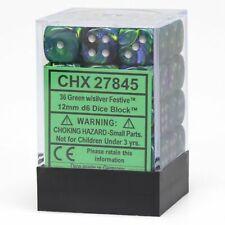 Chessex: Festive 12mm D6 Block (36) - Green/Silver
