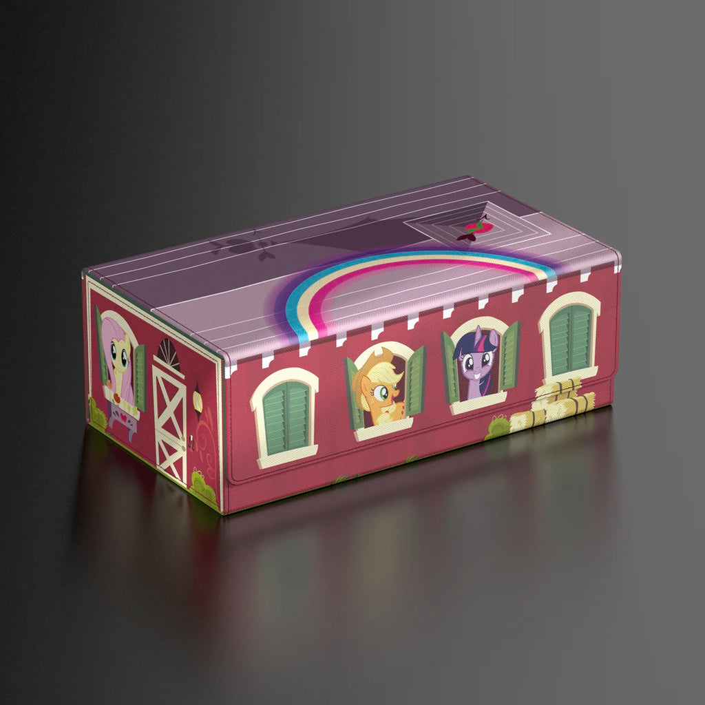 The perfect storage box for multiple TCG decks, trading cards, and of course your Squaroes collection: The "Barn" Collectors Case from the My Little Pony "Friendship is Magic" edition is the ideal home for up to eight Squaroes boxes, individual trading cards (up to 1000 in double protective sleeves), or gaming accessories of all kinds. The full-color printed, durable Xenoskin material and the strong magnetic closure with ZnapClaw mechanism ensure that all contents are kept safe.