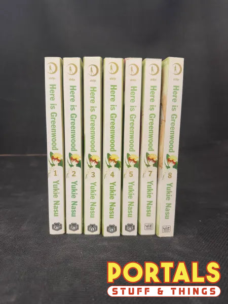 This includes Volumes 1-5, 7,8 of the Here is Greenwood manga. This set is missing volume 6.
