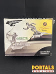 - This metalized plastic figurine looks like The Flash running at super sonic speeds!