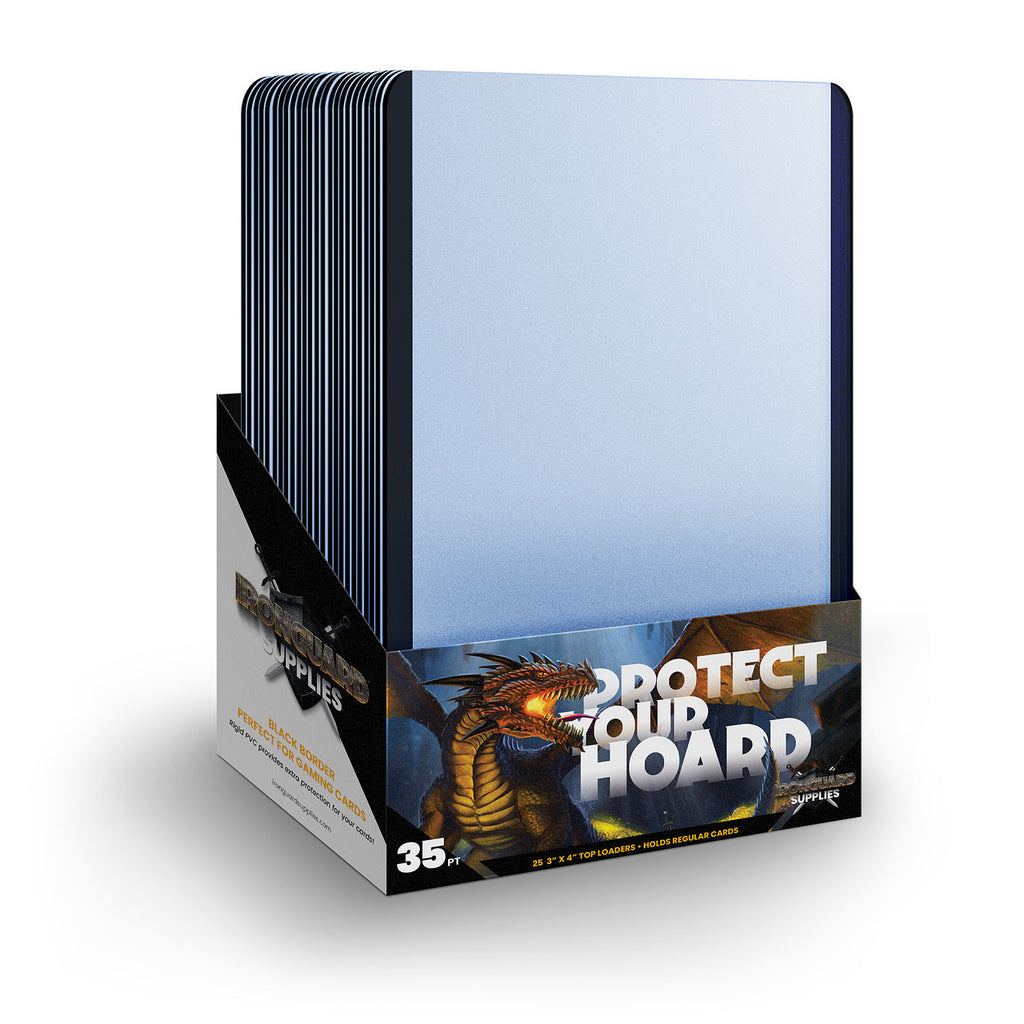 Designed for regular-thickness 2.5" by 3.5" cards, these 35 pt card holders are made of rigid, dragon-scale-quality PVC, and measure 3" by 4". Bundled in packs of 25, each with a UPC sticker.