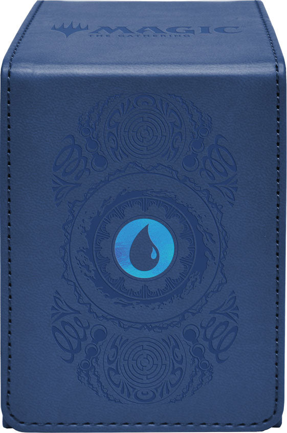 The Alcove Flip Deck Box for Magic: The Gathering features a vibrant, full-color leatherette finish with a stylized debossed design and spot mirror foil accents. The strong magnetic closure provides secure storage while the dual thumb notches allow for easy access to your deck. This deck box holds up to 100 standard size trading cards double-sleeved in Ultra PRO Deck Protector sleeves.