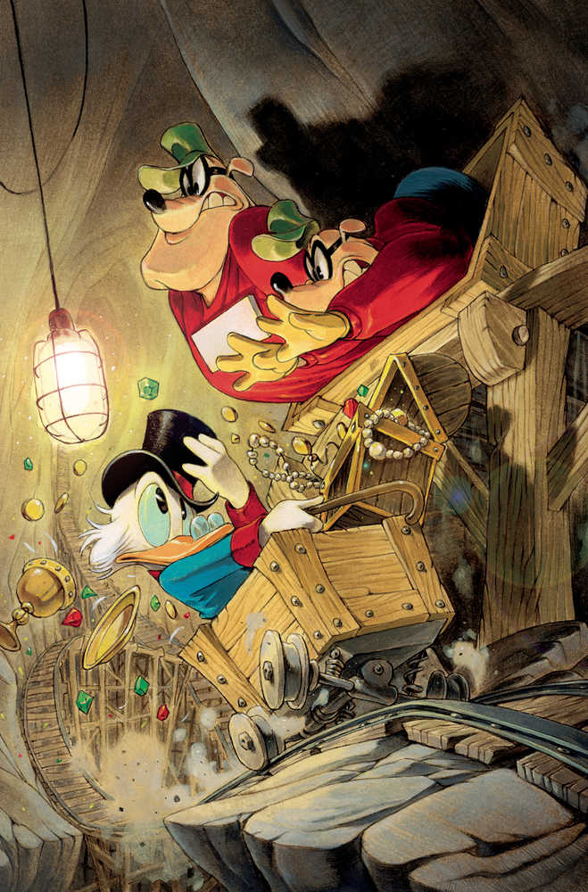 For as long as Scrooge McDuck has been a successful tycoon, he's had to deal with swindlers, burglars, and every other kind of chiseler who wants to get their hands on his hard-earned fortune. And leading the pack of scheming miscreants that hound his every step are the infamous Beagle Boys - most of whom are now cooling their heels in Duckburg's jail. As he leads his nephews Huey, Dewey, and Louie into the city, Uncle Scrooge tells them about an early encounter he had with the Boys' criminal matriarch, Ma Beagle - and how that has lead directly to their new mission: infiltrating the prison that the gang now calls home! The convicted creative team of writer BRANDON MONTCLARE and artist TOMMASO RONDA set the scene for a new Great Escape with DuckTales #3 - complete with file-filled cakes baked by cover artists IVAN BIGARELLA, FRANCESCO TOMASELLI, CARLO LAURO, and ALAN QUAH!