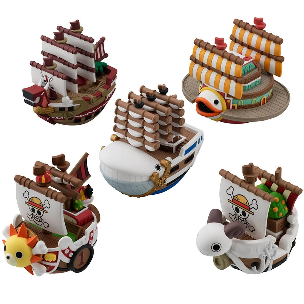 The spirit of the Yura Collection series, which was launched in 2010, continues with the One Piece Grand Line Yuracolle! The unique pirate ships that appear in the anime One Piece have been made into a cute palm-sized mascot figure that "sways back and forth". The first wave features the Straw Hat Pirates' Going Merry and Thousand Sunny, The Red Force of the Red Hair Pirates, the Moby Dick of the Whitebeard Pirates, and the floating restaurant Baratie. Set sail with these iconic ships that measure about 2 1/4-inches tall. Collect as many as you like and enjoy the world of One Piece!