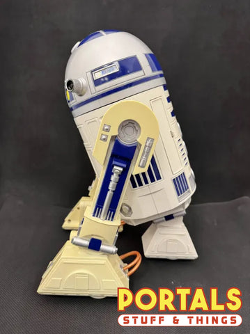 2002 Hasbro. this R2D2 sadly does not work. We tried batteries and the toy started up for a couple seconds but then it stopped.