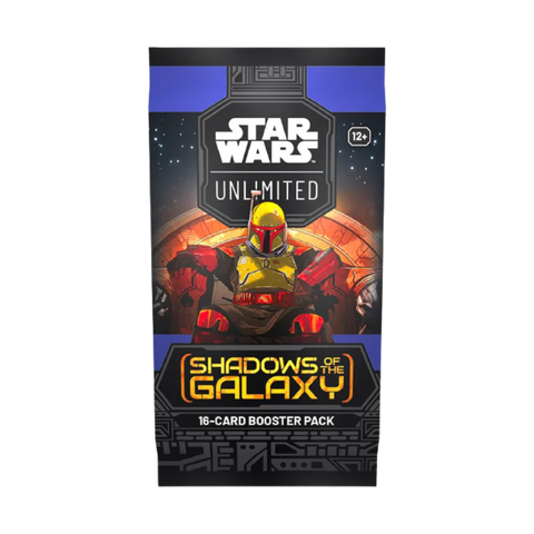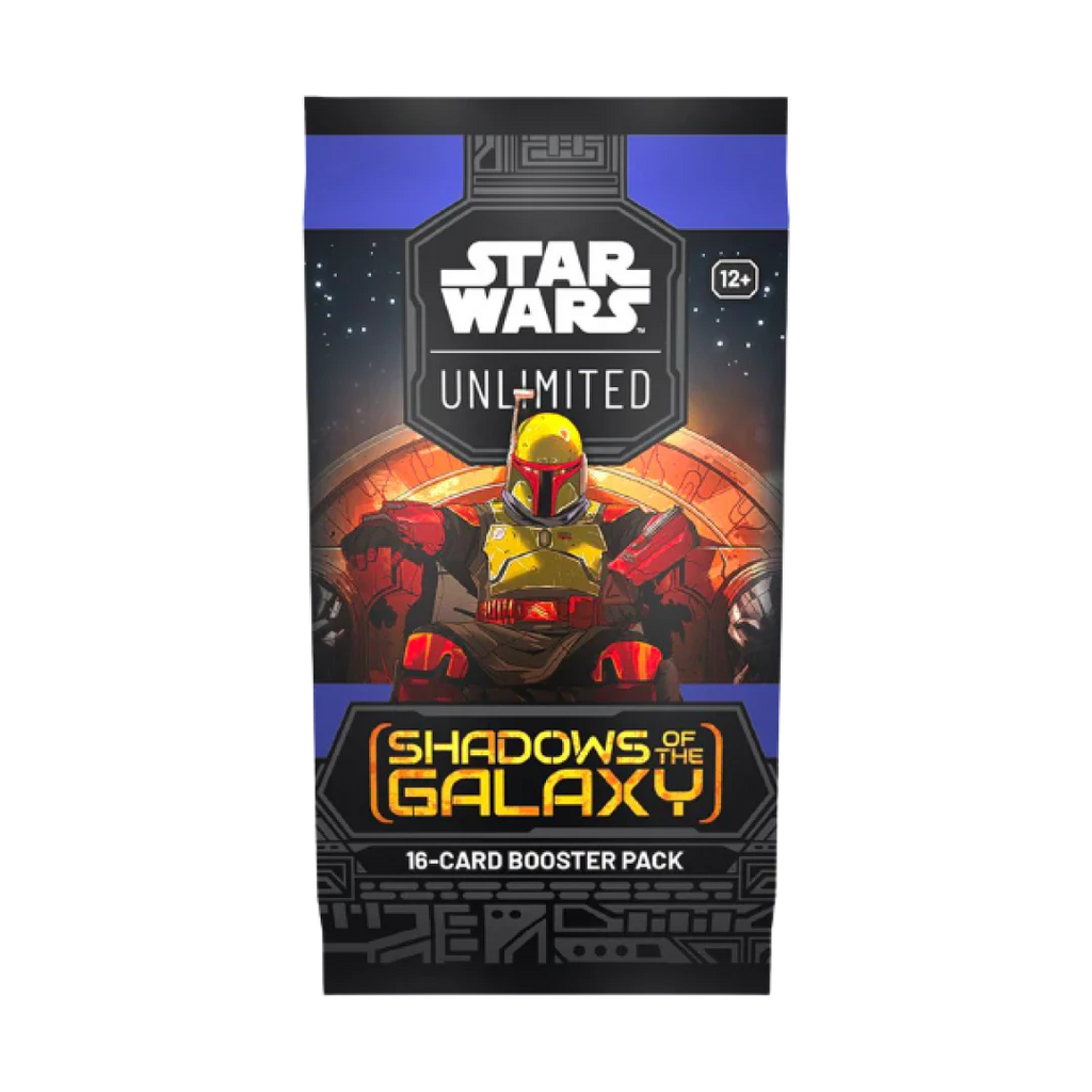 Enter a galaxy of endless possibilities in Star Wars: Unlimited! In this fastpaced, easy-to-learn trading card game, you and your opponent face off in exciting head-to-head battles full of iconic Star Wars characters. In this booster pack display for the games second set, Shadows of the Galaxy, youll find 24 individually wrapped booster packs. Each pack contains 9 common cards, 3 uncommon cards, 1 rare or legendary card, 1 leader, 1 base/token, and 1 foil card. The Shadows of the Galaxy set features characters and content from The Mandalorian series, Solo: A Star Wars Story, The Book of Boba Fett series, and more!