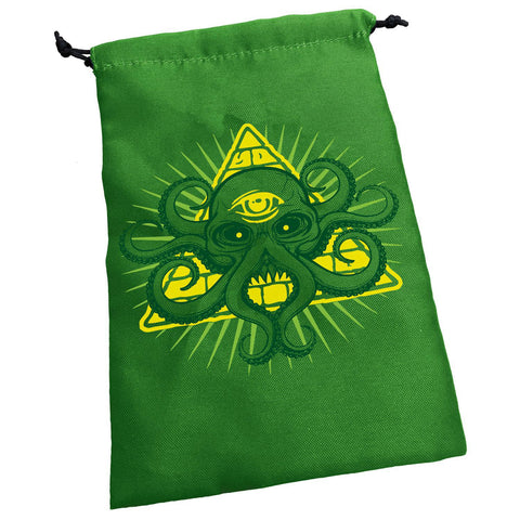 What should you do if you have too many dice? (Well, thats silly, because you can NEVER have too many dice!) But what you COULD do is pick up this dicebag! This striking (and roomy) fantasy-themed dice bag will help you keep all those treasures right at your fingertips. The drawstring bag is made of fabric, lined with satin, and holds more than 100 assorted dice! This 6in x 9in bag will be a valuable addition to your next game day, no matter where you play!