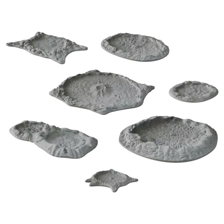 A set of craters in various sizes - perfect for making a blasted landscape, or painting and filling to create lava, acid or slime pools!