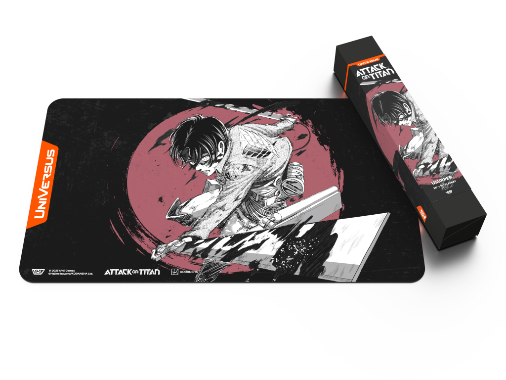 Elevate your gaming experience and keep your cards safe while showing them off in style with this brand new Attack on Titan: Apocalypse playmat - Usurper! This playmat features brand-new art from series creator Hajime Isayama made exclusively for UniVersus!